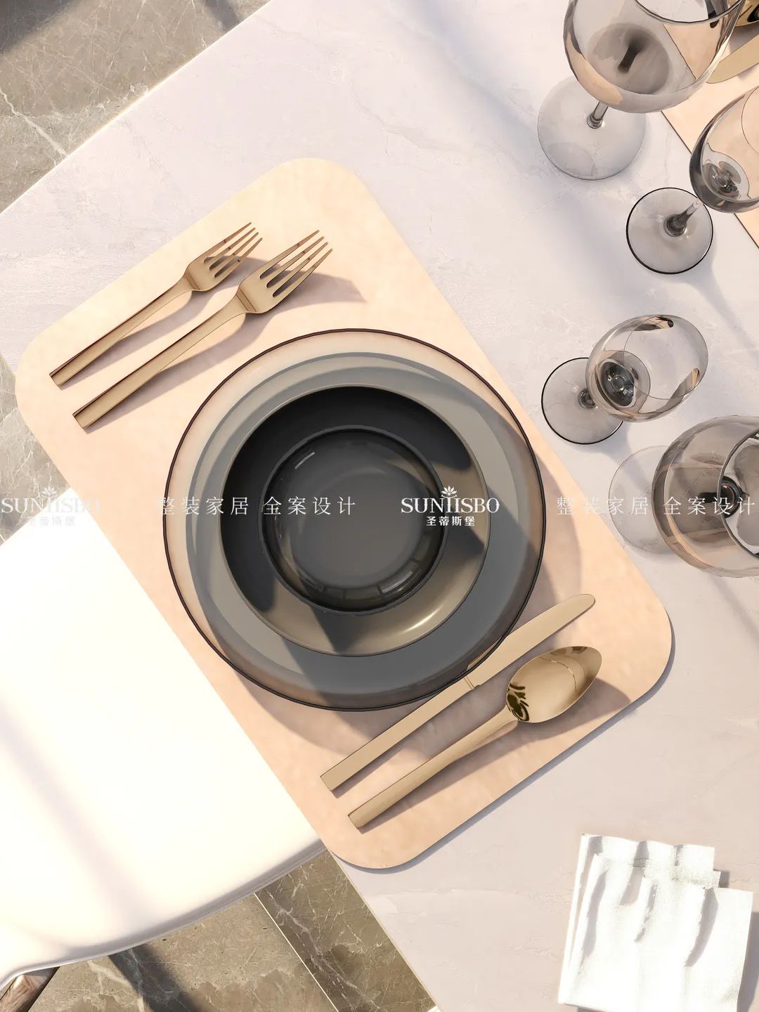 本案业主本人是一对年轻的90后小夫妻,他们对设计要求较高,崇尚极简主义生活,也具有一定的艺术审美标准。本案设计师与业主沟通后,设计初稿就得到肯定,在形式材质上大量运用石材、木材、玻璃、皮革,搭配简约的家具,注重整体统一,表达居住者和谐统一又独特审美的生活方式。